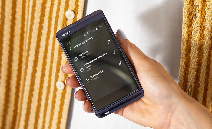 Mėgstantiems turėti pasirinkimą - kartu su Vasco My Voice funkcija, mes siūlome jums rinktis tarp vyriško bei moteriško balso, skirto jūsų vertimams perskaityti. Tai suteikia jums pasirinkimą kiekvienoje situacijoje. Norite ko nors švelnesnio kalbant su šeima, ar griežtesnio balso tono konferencijai? Jūsų vertimo įrenginys, jūsų taisyklės.